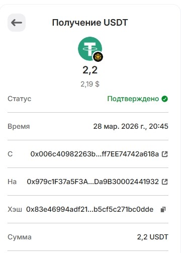 Депозит 20 USDT March 25, 2026, 2:14 pm