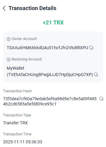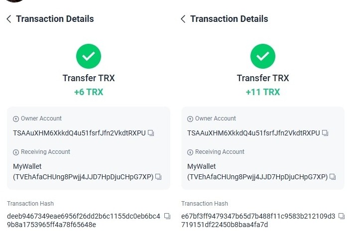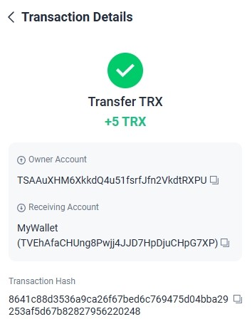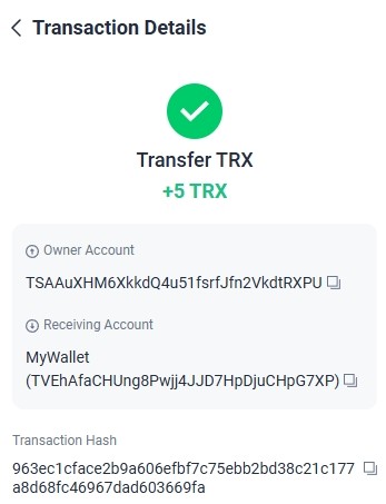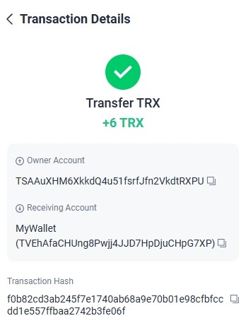 Completed Amount: +1.20 TRX