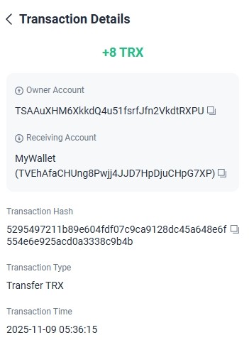 8. Amount:-7.00 TRX