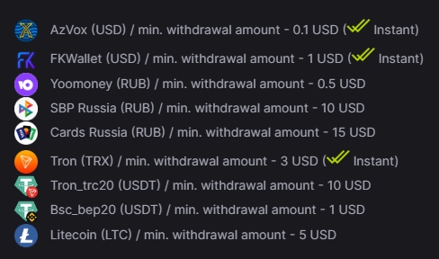 ТИП ВЫПЛАТ: ИНСТАНТ на TRX, AzVox, FKWallet, на другие в ручном режиме