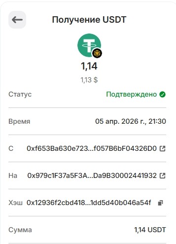 1 USDT 0x4aaaaf1bc5ad715cc17bc52a6ec34757ee2b45bcca0c1b6aca42efcdb6436748