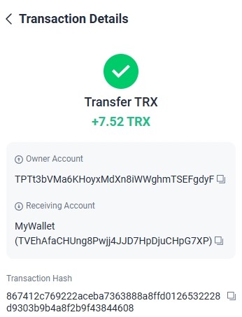 https://tronscan.org/#/transaction/2086fa8af8112e03f125521fabc05c6621b2dae359f5
