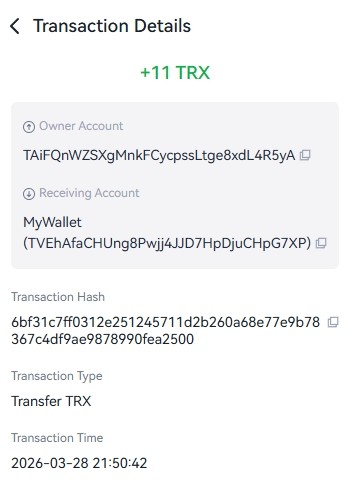Вывод средств 03-27-2026 03:08:05 Tron TRX 13.5