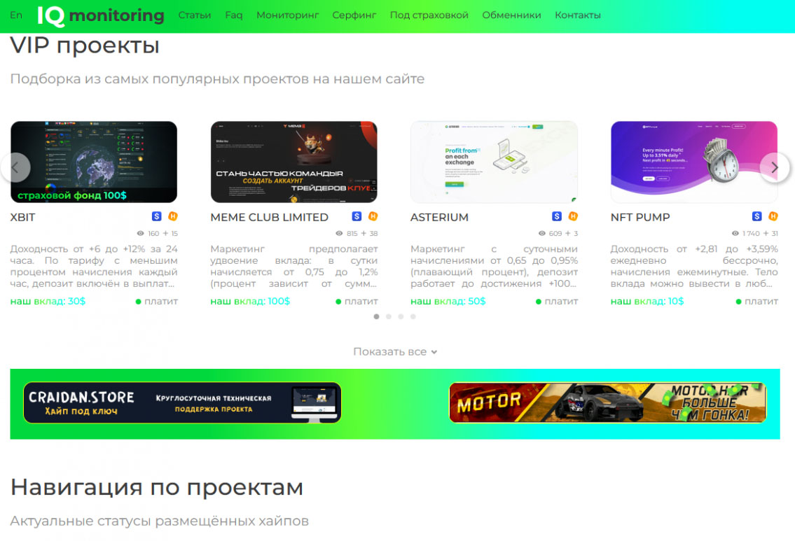 2) 2 рекламных места между разделами "vip проекты" и "навигация по проектам". В ротации на каждом месте может быть до 4х баннеров. Размер 468*60px. Стоимость - 7$ в неделю