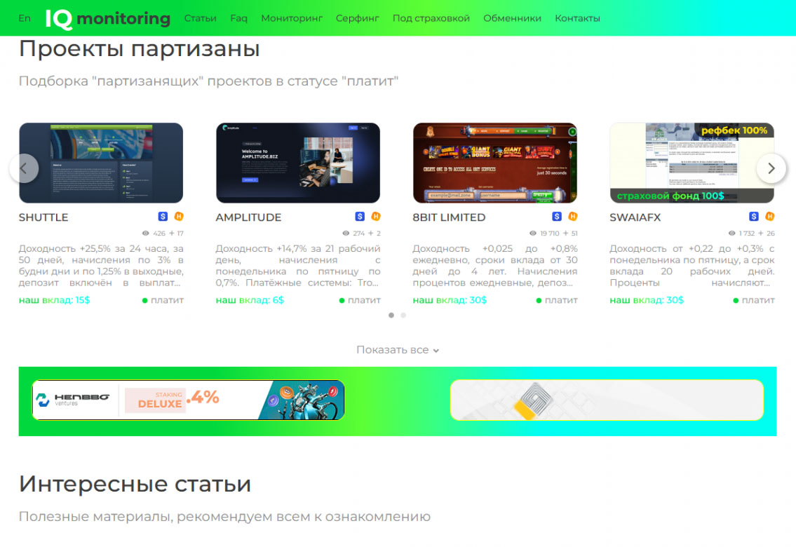 3) 2 рекламных места между разделами "партизаны" и "интересные статьи". В ротации на каждом месте может быть до 4х баннеров. Стоимость - 5$ в неделю